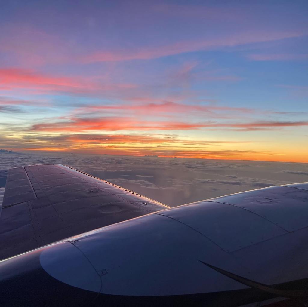Flying with Agape in December. A beautiful sunset over the ocean.